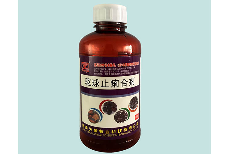 驱球止痢合剂 【主要成分】青蒿、常山、诃子、地榆、秦皮等 【功能主治】杀虫止血、温补肾阴。清热解毒止痛。对鸡小肠球虫、盲肠球虫病、住白细胞原虫病(白冠病)有特效,能快速止血,杀灭球虫,并增强机体对球虫的免疫功能,是当前较理想的纯中药抗球虫药,无药残,可配合任何西药使用。也可用于兔球虫病。 【用法用量】混饮:本品250ml兑水150kg,全天量一次投入,连用3-5天。 【包装】250ml/瓶